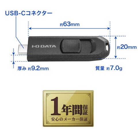 IOデータ USB 5Gbps対応 USB-C搭載 USBメモリー [ 256GB / USB TypeC / スライド式 ] ブラック R-UTC-SL256GK