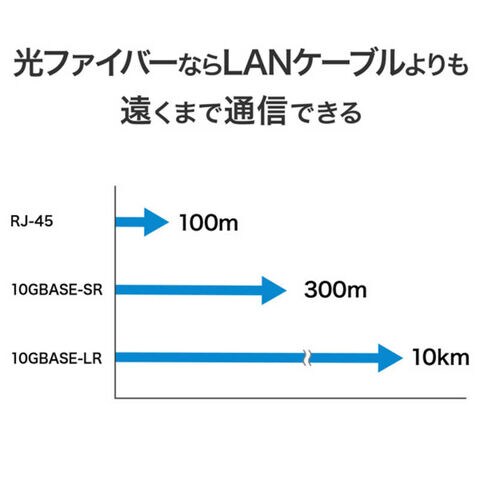 環境に応じたSFP+モジュールをご用意いただくことで、LANケーブルや光ファイバーを使用した10Gbps通信が可能です。