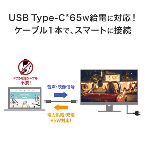 ノートPCをUSB Type-Cケーブルで接続することにより、映像や音声の入力、ノートPCへの給電および充電がケーブル1本で行われ、使用するコンセントも最小限に抑えられます。