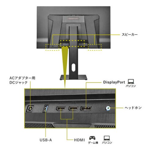 付属品:電源コード(PSE適合品)、DisplayPortケーブル、ACアダプター、台座ネック、台座、リモコン、動作確認用電池(アルカリ)×2、必ずお読みください