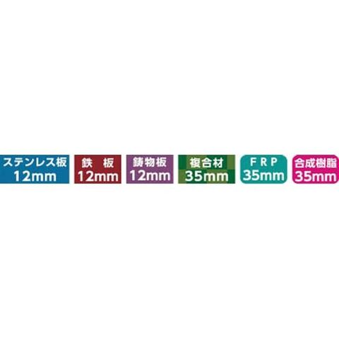 ●被削材:ステンレス板(12mmまで)、鋳鉄(12mmまで)、鋼板(12mmまで)、複合材料、FRP、樹脂(35mmまで)。