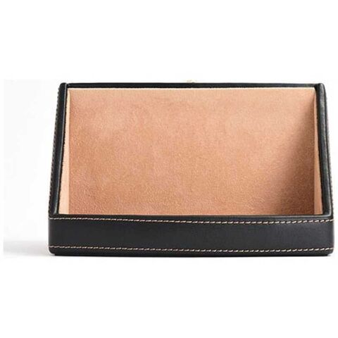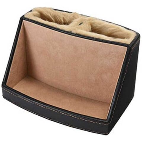ブラックの生地にブラウンのステッチが上品なメガネスタンドです。