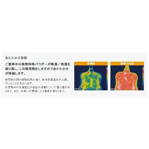 ご使用と同時に発熱特殊パウダーが吸湿活動を開始し、発熱が約10秒位から始まり体感温度が上昇します。