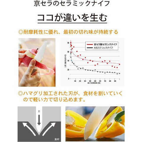 ● 「白い刃」は金属包丁にはないセラミックナイフの大きな特徴
