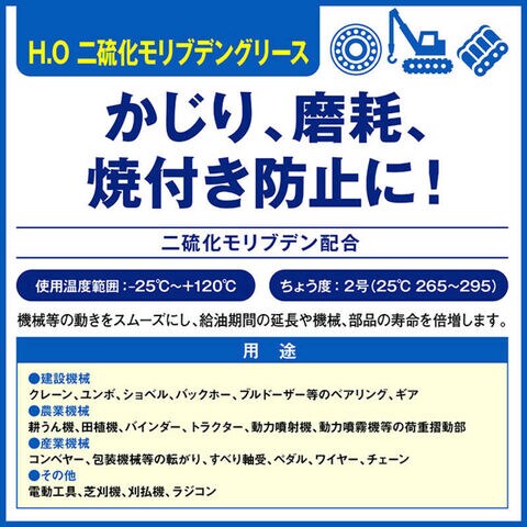 機械などの動きをスムーズにし、給油期間の延長や機械、部品の寿命を倍増します。