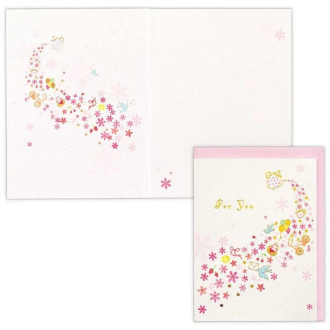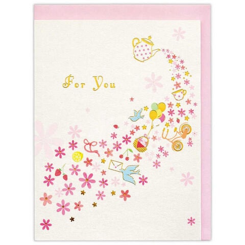 シンプルなデザインで贈りやすい♪ティーポットからあふれる小花を描いた多目的カード