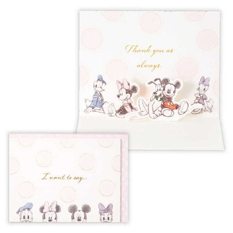 スケッチ風の優しいタッチにほっと心安らぐミッキーたちのサンキューカード