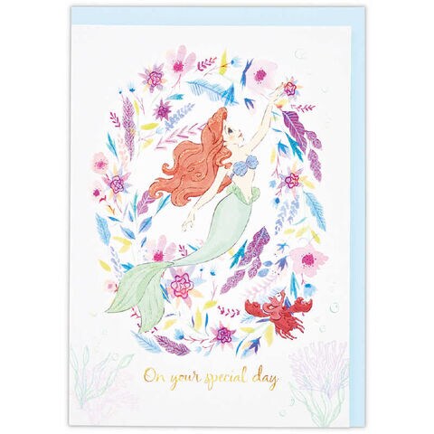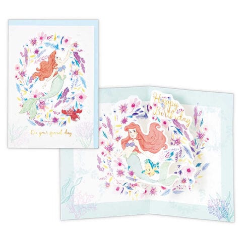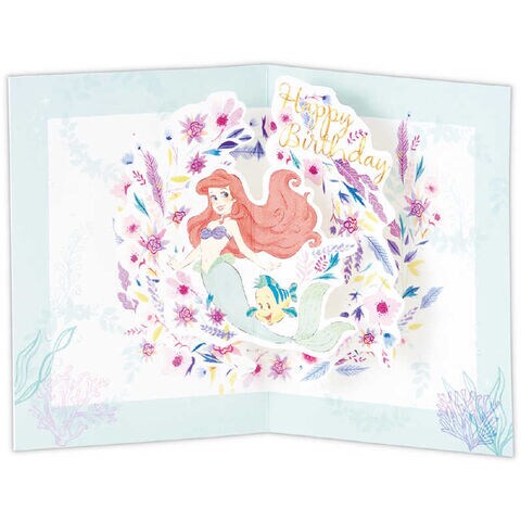 ニホンホールマーク 誕生日カード 立体 ディズニーアリエル ラメフラワーリース EAR-833-435