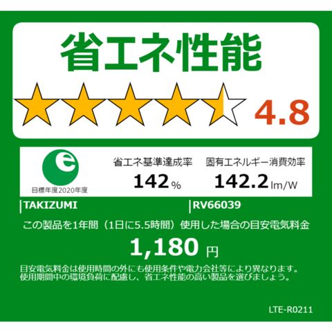 固有エネルギー消費効率(lm/w):142.2lm/w