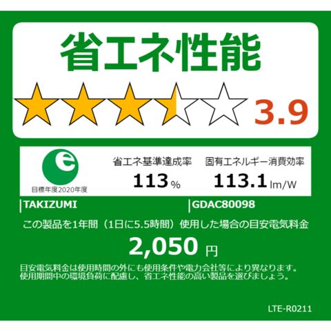 固有エネルギー消費効率(lm/w):113.1lm/w