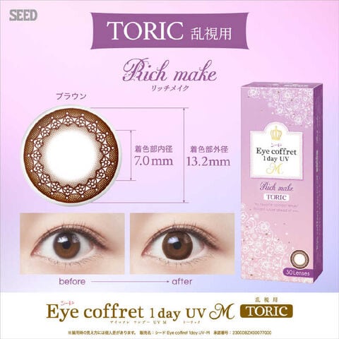 SEED (度あり/-2.00) アイコフレワンデーUV M トーリック リッチメイク (BC8.6/CYL-0.75/AX180) 30枚入