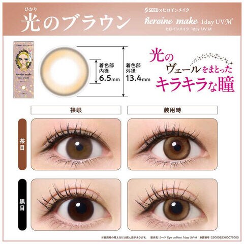 SEED (度あり/-1.50) ヒロインメイク ワンデー UV M 光のブラウン (BC8.7/PWR-1.50/DIA14.2) 10枚入 カラコン