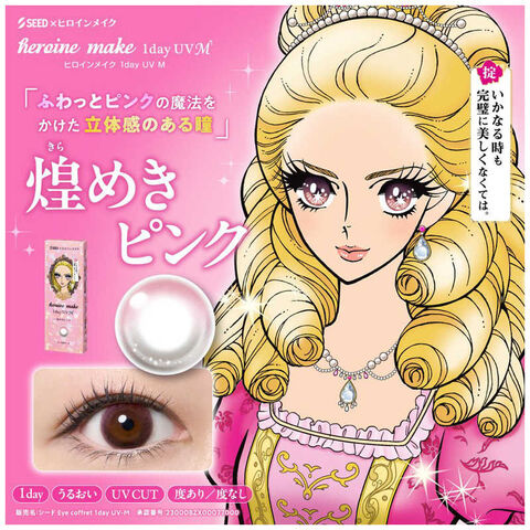 SEED (度あり/-1.00) ヒロインメイク ワンデー UV M 煌めきピンク (BC8.7/PWR-1.00/DIA14.2) 10枚入 カラコン