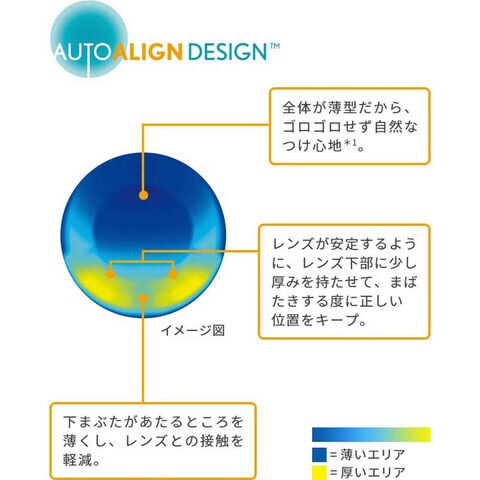 独自のレンズデザインで、瞳の動きにレンズがフィット。