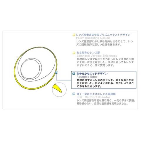 装用中、目の動きによるレンズのズレを防ぐから、いつも正しい位置にレンズが安定します。まばたきするたびに視界がゆがんで見えにくくなるといったトラブルも解消され、クリアな視界がいつまでも続きます。
