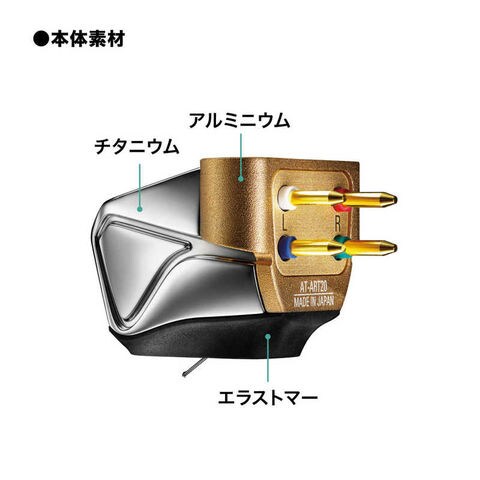「ART」シリーズのフラッグシップモデルAT‐ART1000と同様、ダイヤモンドチップを固定するチップ補強板にはチタニウムを採用。質量の軽量化を図り、高域特性を改善しています。