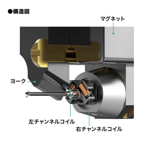 音溝を忠実に読み取り、音の分離感を高める無垢特殊ラインコンタクト針を採用。さらに、ボロンカンチレバーの先端からコイルまで、支点に向けて段階的に太くなるステップドパイプ構造も採用しています。カンチレバーとアーマチュアの接続部が二重構造となるため剛性が高まり、カンチレバーの強度の向上とともに不要な振動を抑制します。