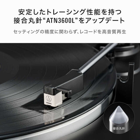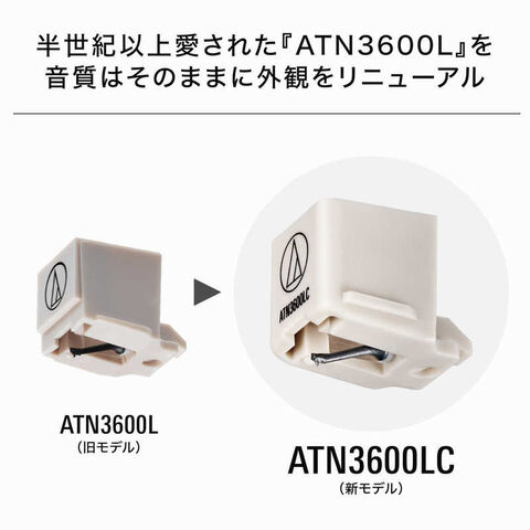 カートリッジが多少傾いてセッティングされていても、針先がレコード盤の溝に正しく接触する特長を持つ接合丸針『ATN3600L』。