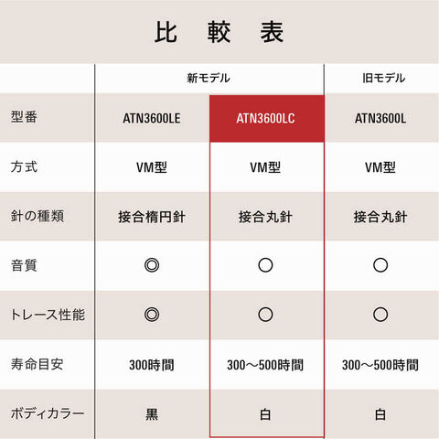 AT-SB727|AT-SB2022|AT-LP60X|AT-LP60XBT|AT-PL300|AT-PL300USB|AT-PL300USBII|AT-PL300BT ※交換針の寿命は目安として約300~500時間です。