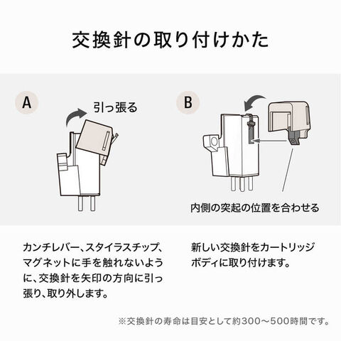 2. 新しい交換針をカートリッジボディに取り付けます。