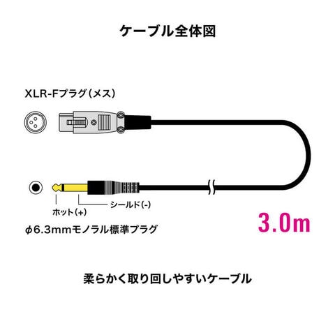 オーディオテクニカ 3m XLR-F-φ6.3mmモノラル標準 ケーブル AT-MI09/3.0