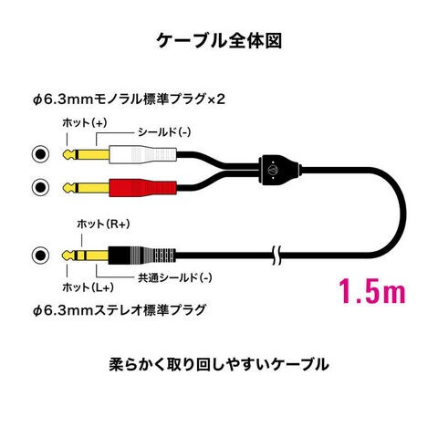 オーディオテクニカ 1.5m φ6.3mmモノラル標準×2-φ6.3mmステレオ標準 AT-MI84/1.5