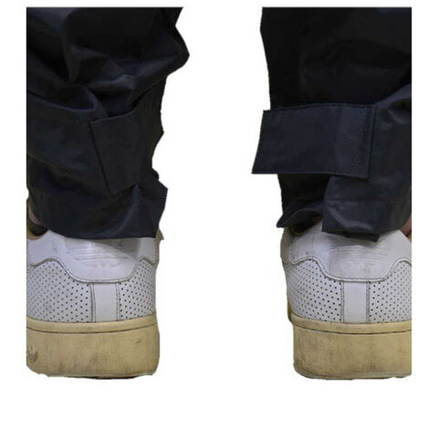 ●パンツの裾幅のマジックテープ調整により雨水の跳ね上がりによる浸水を防ぐ。