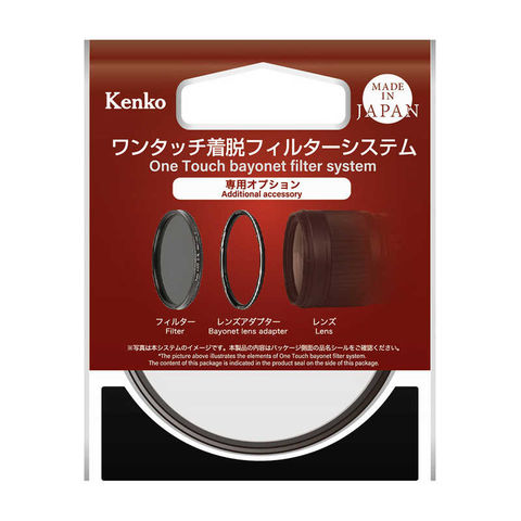 「ワンタッチ着脱フィルターキット」のレンズアダプターをあらかじめレンズにつけておくことで、フィルターはバヨネット式で瞬時に着脱することができます。通常のねじ込み式フィルターのようにグルグル回すことなく素早くフィルターを着脱できます。