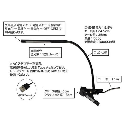 東京メタル LEDクリップライト(ACアダプター別売品) [LED / 昼光色~電球色] YO-43