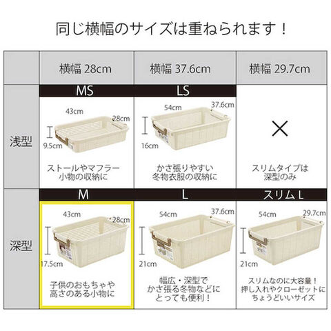 ●積み重ねできる収納バスケットです。