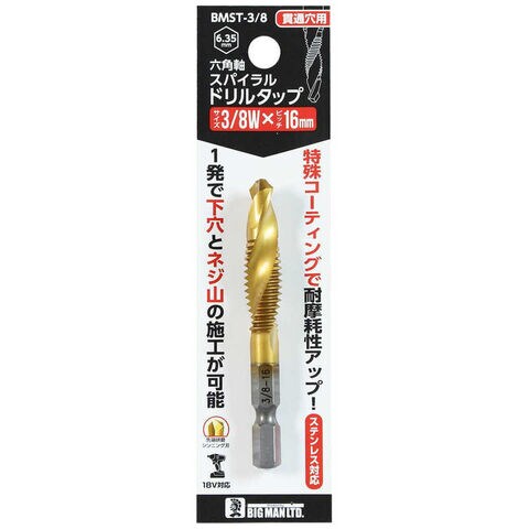 ビッグマン #076807 六角軸ドリルタップ 3/8Wx16mm BMST38