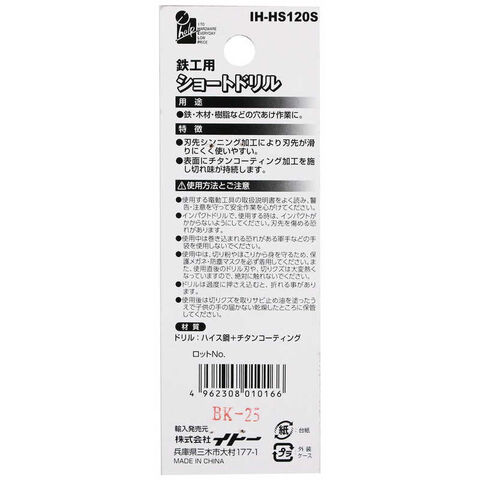 ビッグマン #077687 ショートドリル鉄工用 12.0mm IHHS120S