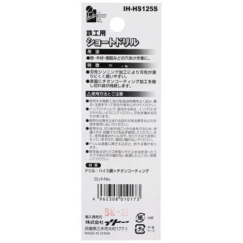ビッグマン #077688 ショートドリル鉄工用 12.5mm IHHS125S