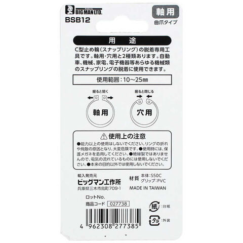 ビッグマン #027738 ミニスナップリングプライヤー 軸用 BSB12