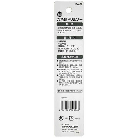 ビッグマン #060096 六角軸ドリルソー 5mm DA-72 DA72