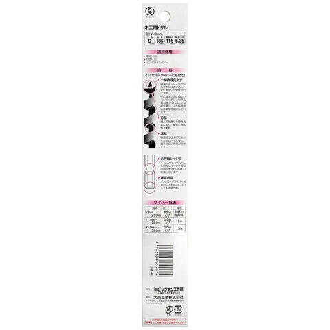 ビッグマン #065467 木工用ドリルミドル 9.0mm #065467