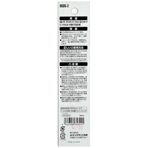 ビッグマン #065822 下穴テーパードリル短 3mm MSDS2