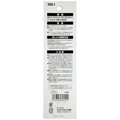 ビッグマン #065824 下穴テーパードリル短 3本組 MSDS5