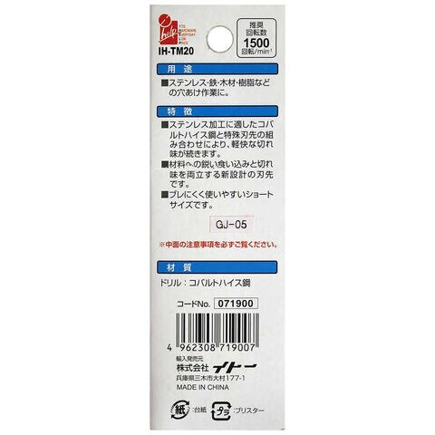 ビッグマン #071900 ステンショートドリル 2.0mm IHTM20