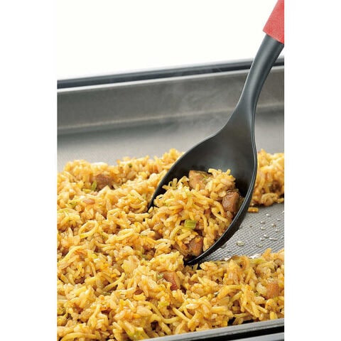 熱に強いプラスチック素材を使用、フッ素加工のプレートやフライパンをキズつけることなく、料理できます。混ぜて、サッとすくって盛り付ける!一連の作業が1本でできるから大助かり。