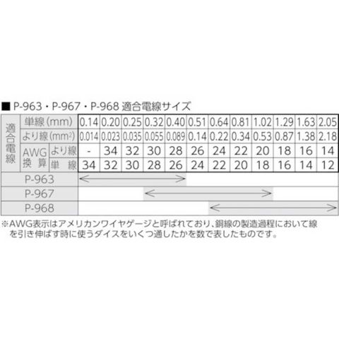 ・適応電線: 単線: 0.65/0.8/1.0/1.6/2.0mmφ、より線: 0.3/0.5/0.75/1.25/2.0mm^2