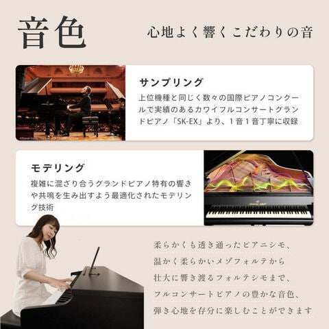 一音ずつ丁寧に録音されたから、まるで目の前にグランドピアノがあるような、豊かで美しい響きピアニストも認める音色で、毎日の練習がもっと気持ちよく、特別な時間に。