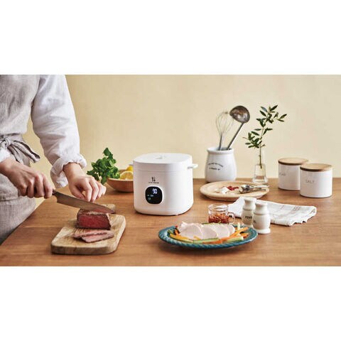 低温調理初心者でも簡単に実践できるレシピブックが付属!「サーモンのコンフィ」や「リンゴの甘酒コンポート」など食事メニューからスイーツまで7種の料理をすぐにお楽しみいただけます。