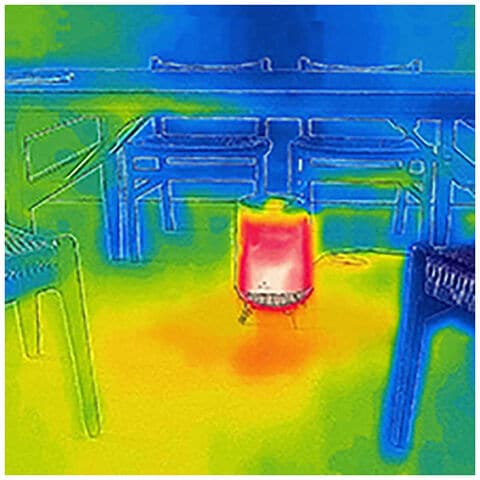 ●エアコンの温風が届きにくいテーブルや机の下で、360°全方位に温風が広がり、 足元を暖めるスポットヒーター。