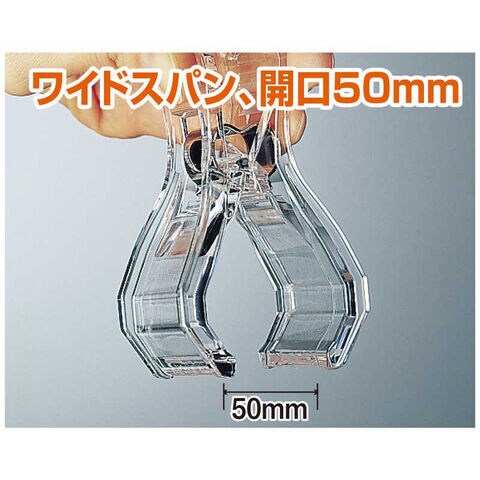 大型クリップ部:すべり止め付。什器、パイプ等がらくらくはさめます。開口50mm。
