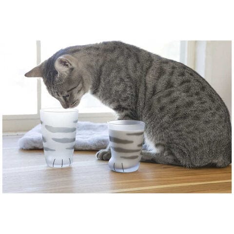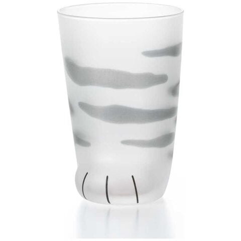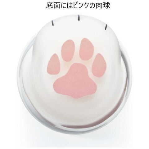 磨りガラスで猫のふわふわした毛並みを表現したグラスの底に、ピンクの肉球が描かれています。
