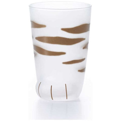 磨りガラスで猫のふわふわした毛並みを表現したグラスの底に、ピンクの肉球が描かれています。