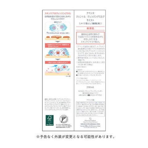 アベンヌ温泉水*配合で、メイクオフ後も乾燥などの肌トラブルを防ぎます。