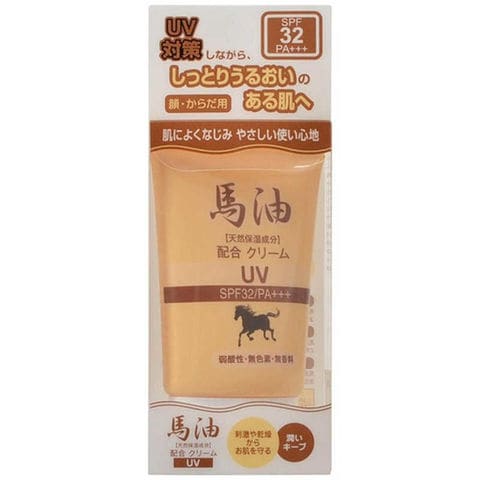 外出前の紫外線防止対策として、外出後の日焼けしたお肌のケアとしても使える、馬油(天然保湿成分)配合のスキンケアクリームです。外出時に手軽に持ち運べるチューブタイプ。