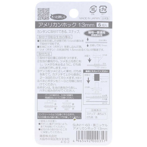 清原 サンコッコー アメリカンホック13mm 黒ニッケル [SUN1163] SUN11-63